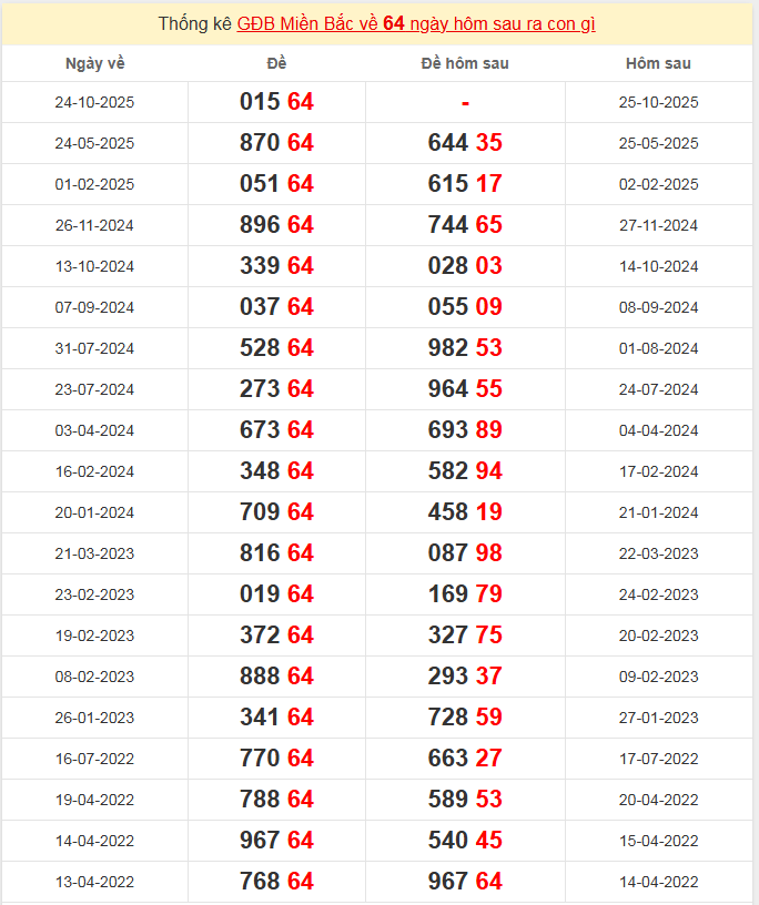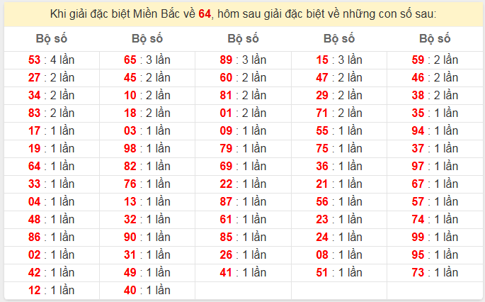 Đặc biệt về 64 ngày mai ra con gì? Xem tần suất ĐB hôm sau