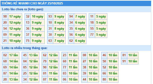 4. Thống kê lô tô KQXSMB hôm nay 25/10/2025