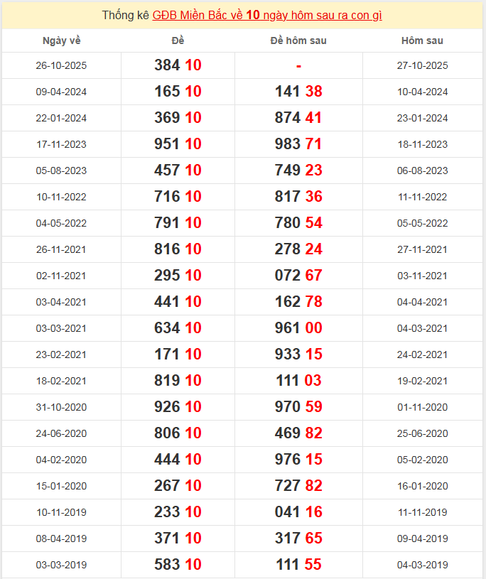 Đặc biệt về 10 ngày mai ra con gì? Xem tần suất ĐB hôm sau