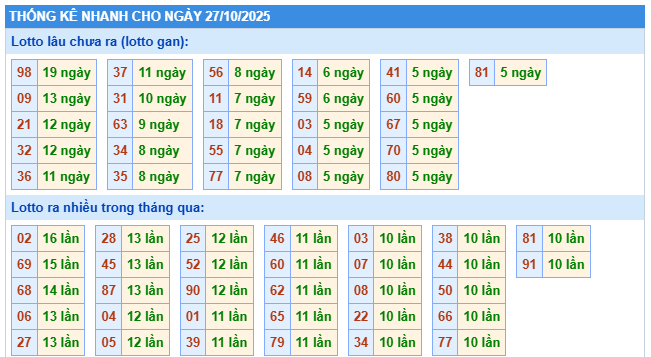4. Thống kê lô tô KQXSMB hôm nay 27/10/2025