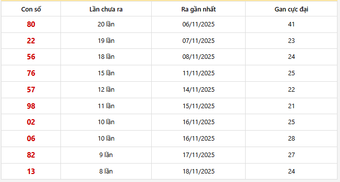 ⭐️ Cặp số lâu xuất hiện nhất XSMB (30 kỳ quay): 80 - 22 - 56 - 76 - 57 - 98 - 02 - 06