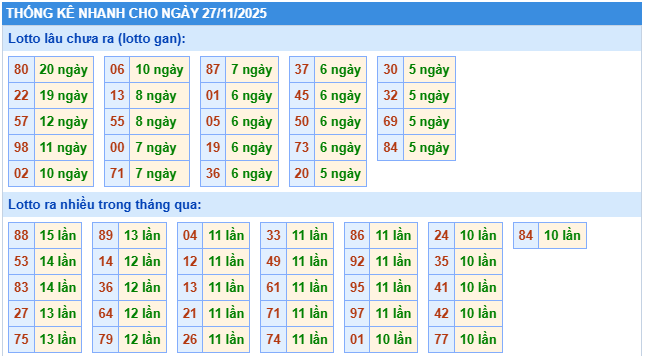 3. Thống kê xổ số miền Bắc ngày 27/11/2025 - Dàn số đẹp Miền Bắc