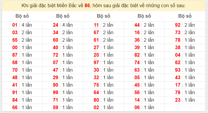 Đặc biệt về 86 ngày mai ra con gì? Xem tần suất ĐB hôm sau