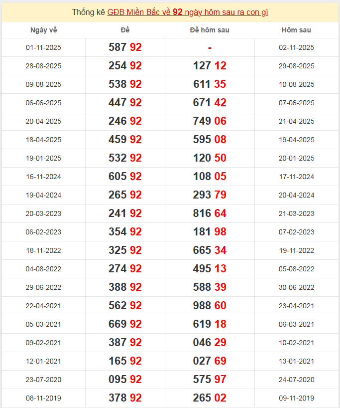Đặc biệt về 92 ngày mai ra con gì? Xem tần suất ĐB hôm sau
