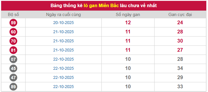 - Lô gan miền Bắc lâu chưa xuất hiện: 59 - 60 - 70 - 81