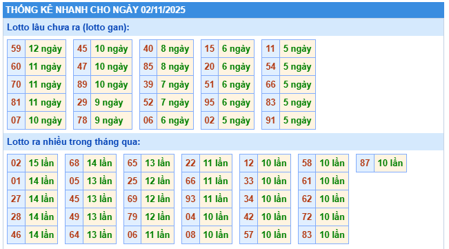 Thống kê lô tô Xổ số miền Bắc hôm nay 2/11/2025: