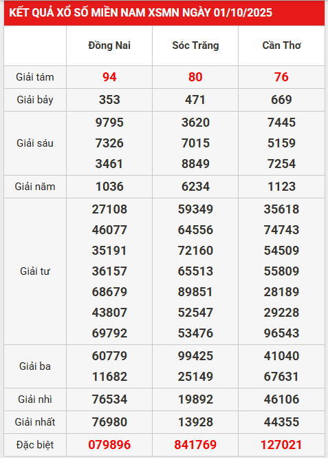 Toàn bộ thông tin trên được cung cấp hoàn toàn miễn phí, giúp người chơi thuận tiện theo dõi và phân tích kết quả XSMN ngày 8/10/2025. Hy vọng rằng những dữ liệu hôm nay sẽ giúp bạn chọn được con số phù hợp và gặp nhiều may mắn trong kỳ quay thưởng tiếp theo.