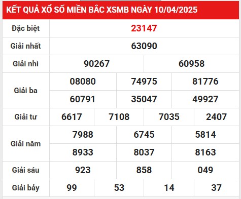 Dưới đây là phân tích kết quả KQXSMB ngày hôm qua, với thông tin chi tiết về tần suất các lô VIP xuất hiện nhiều nhất, ít nhất, lô VIP gan lâu ngày, và chu kỳ giải đặc biệt. Những dữ liệu này sẽ cung cấp các thông tin hữu ích để bạn tham khảo và lựa chọn các con số có khả năng xuất hiện trong ngày 11/4/2025.