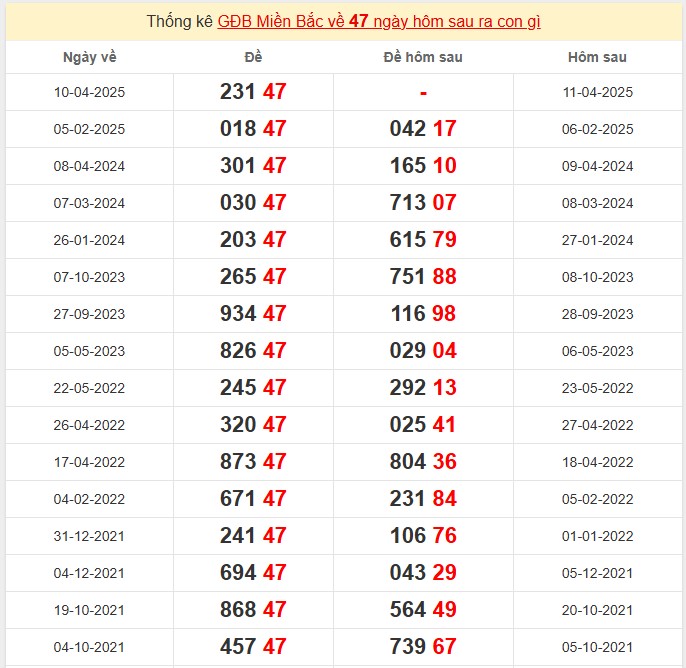 Đặc biệt về 47 ngày mai ra con gì? Xem tần suất ĐB hôm sau