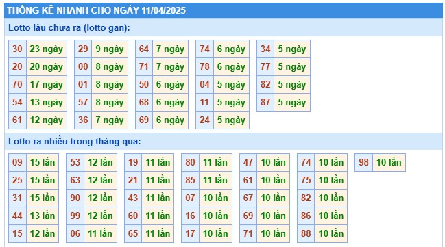 Thống kê lô tô Xổ số miền Bắc hôm nay 11/4/2025: