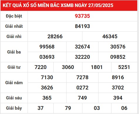 - Ngoài ra, KQXS miền Bắc hôm nay 93735