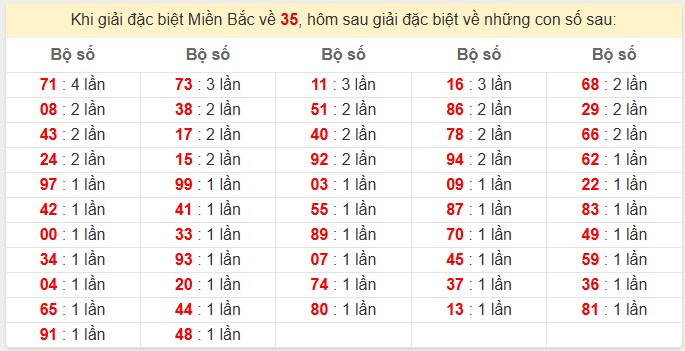 Tham khảo thống kê giải đặc biệt về 35 ngày mai ra con gì?