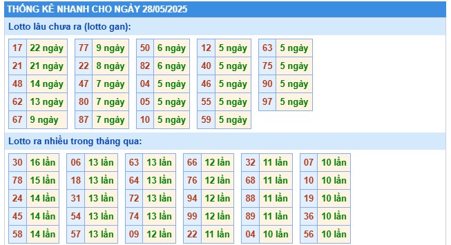Thống kê lô tô Xổ số miền Bắc hôm nay 28/5/2025: