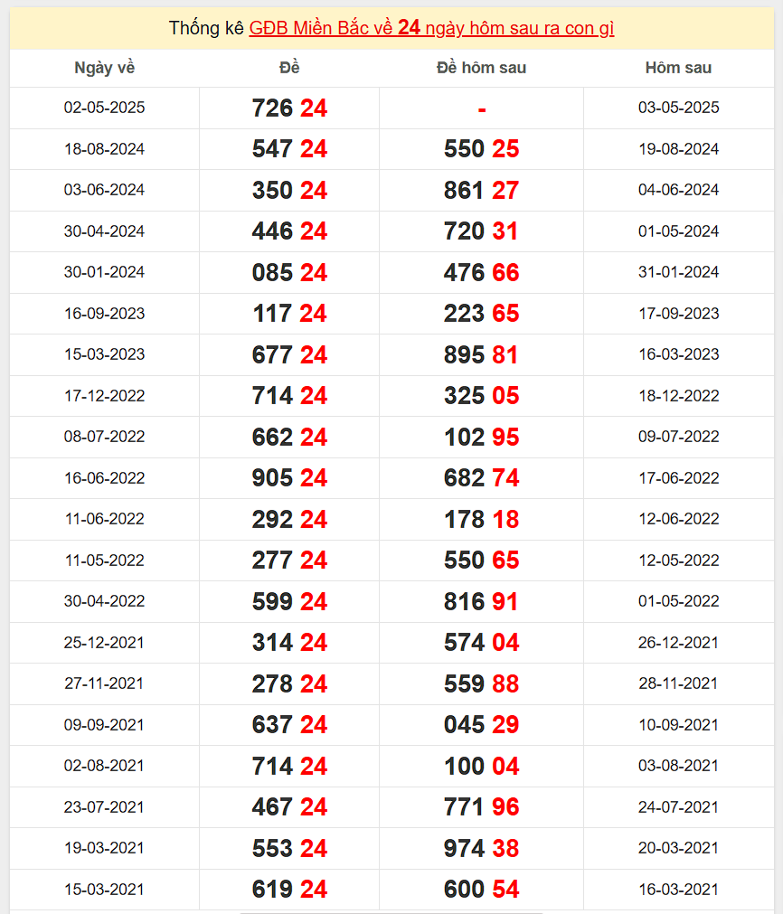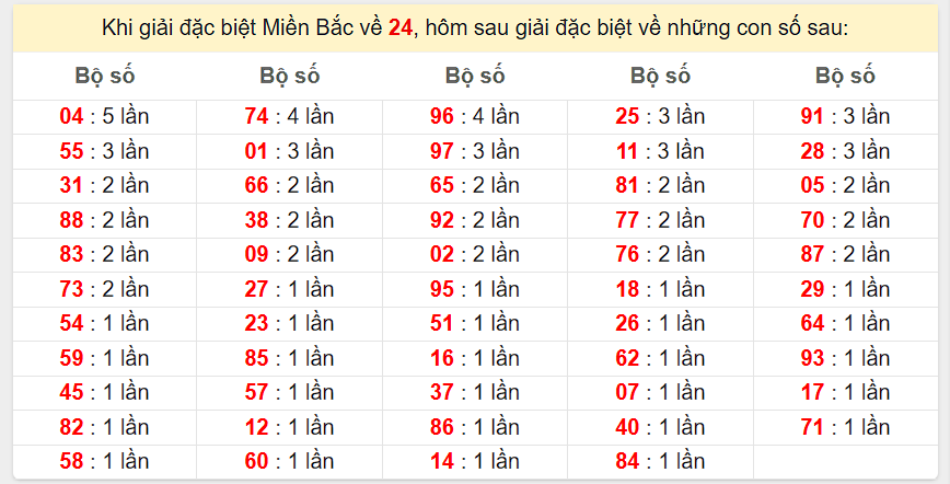 Đặc biệt về 24 ngày mai ra con gì? Xem tần suất ĐB hôm sau