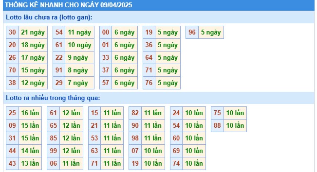 4. Thống kê lô tô KQXSMB hôm nay 9/4/2025