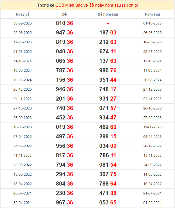 Đặc biệt về 36 ngày mai ra con gì? Xem tần suất ĐB hôm sau