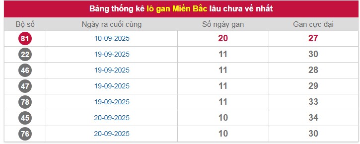 - Lô gan miền Bắc lâu chưa xuất hiện: 81 - 22 - 46 - 47 - 78