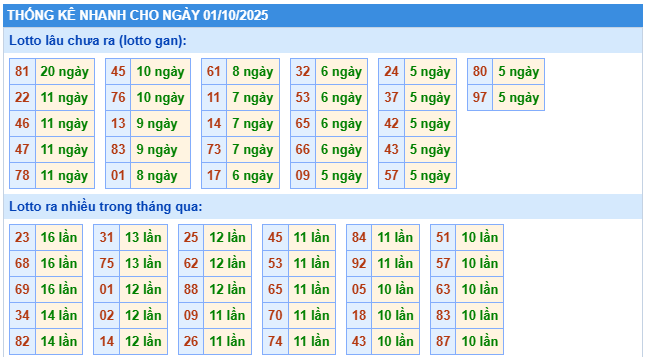4. Thống kê lô tô KQXSMB hôm nay 1/10/2025