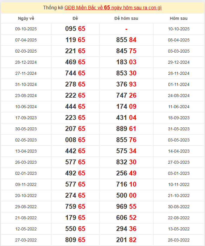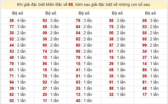 Đặc biệt về 65 ngày mai ra con gì? Xem tần suất ĐB hôm sau