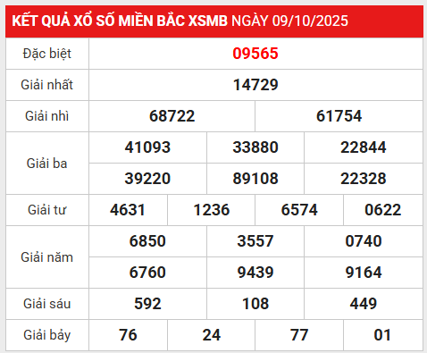 - Ngoài ra, KQXS miền Bắc hôm nay 09565