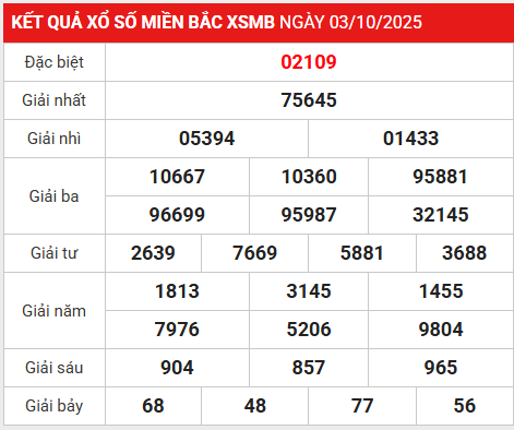 3. Thống kê lô vip miền Bắc ngày 4/10/2025 hai số cuối giải đặc biệt