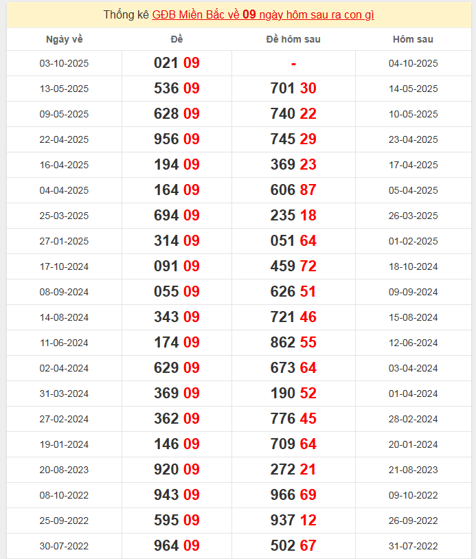 Đặc biệt về 09 ngày mai ra con gì? Xem tần suất ĐB hôm sau