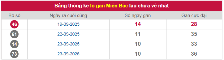 - Lô gan miền Bắc lâu chưa xuất hiện: 46 - 61 - 14 - 73