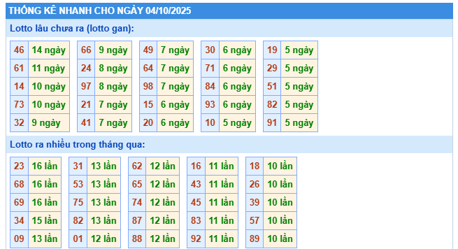 4. Thống kê lô tô KQXSMB hôm nay 4/10/2025