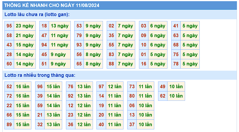 Thống kê XSMB 11/8/2024-Phân tích Xổ Số Miền Bắc chủ nhật