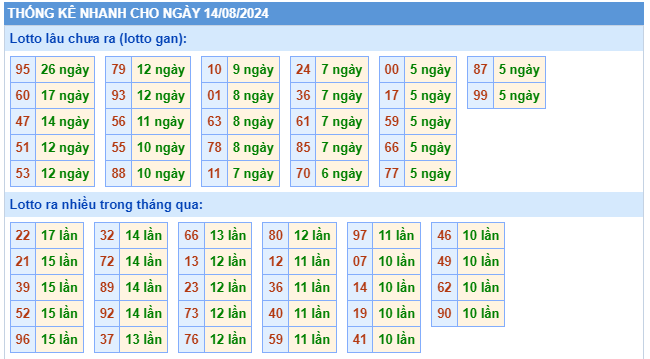 Thống kê XSMB 14/8/2024-Phân tích Xổ Số Miền Bắc thứ 4