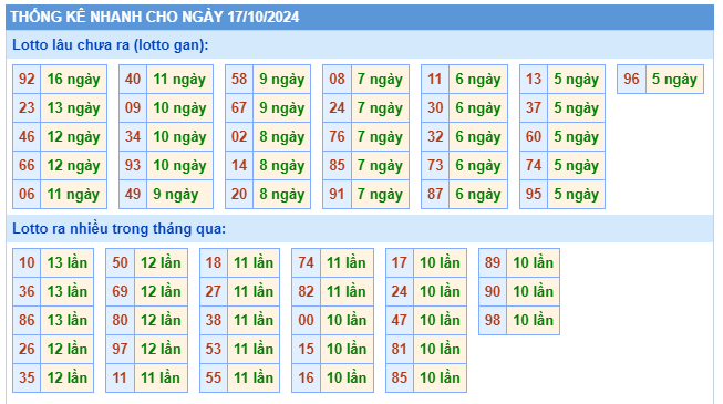 3. Thống kê SXMB 17/10/2024 hôm nay thứ 5