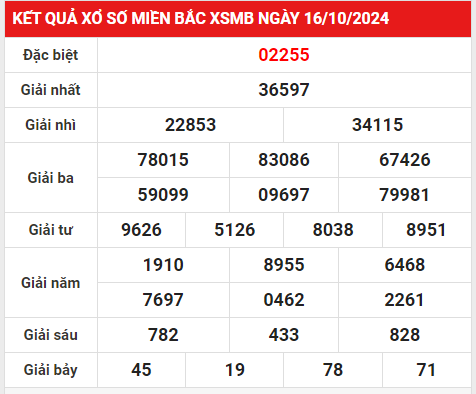 17/10/2024 07:53 - Xem(1405)Thống kê Kết quả xổ số miền Bắc ngày 17/10/2024 - Tham khảo KQXSMB ngày 17/10/2024 siêu chính xác, được thực hiện bởi các chuyên gia có kinh nghiệm, dựa trên phân tích kết quả trước đó và thống kê lô tô. Hãy tham khảo các cặp số đẹp hôm nay với bộ số bạch thủ đặc biệt nhất để có cơ hội trúng lớn.
