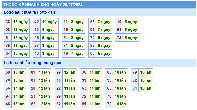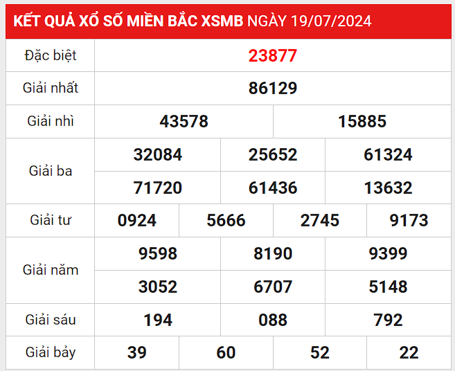 3. Thống kê KQXS miền Bắc 20/7/2024 hôm nay thứ 7
