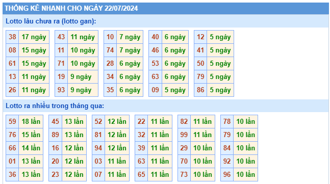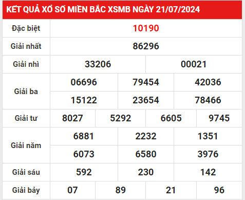 3. Thống kê Kết quả xổ số miền Bắc 22/7/2024 hôm nay thứ 2