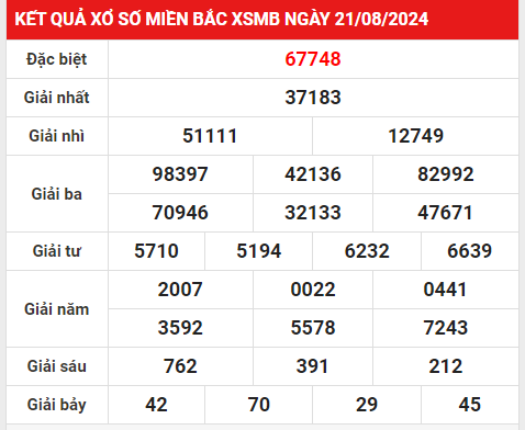 - Bên cạnh đó, KQXS miền Bắc 67748