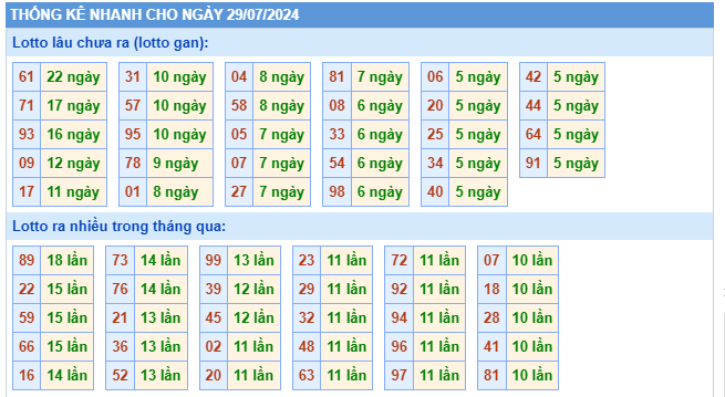3. Thống kê SXTD 29/7/2024 hôm nay thứ 2